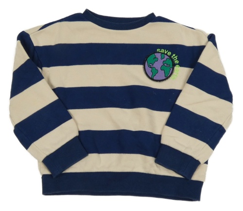 Tmavomodro-pudrová pruhovaná mikina s planetou