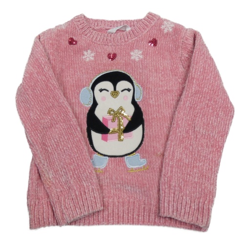 Ružový žinylkový sveter s tučňákem Primark