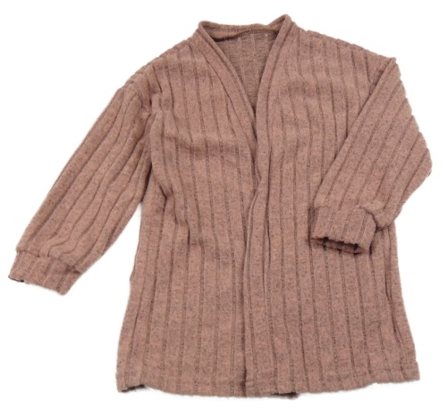 Staroružový melírovaný rebrovaný úpletový cardigan