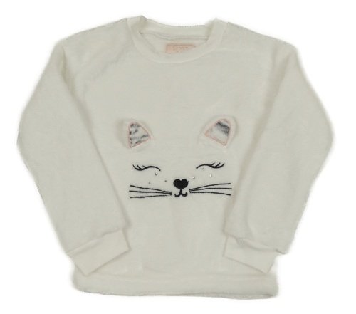 Biela chlpatá mikina s mačkou Lipsy London