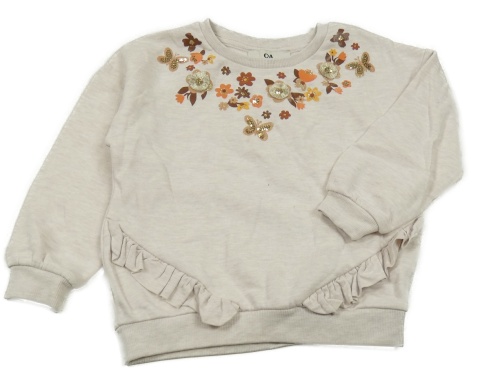 Svetlobéžová melírovaná mikina s kvietkami a motýlikmi a flitrami a volánikmi C&A