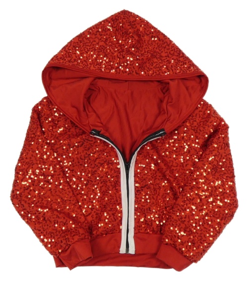 Červená flitrová prepínaci mikina s kapucňou