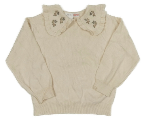 Krémový sveter s golierikom s výšivkami květin Zara