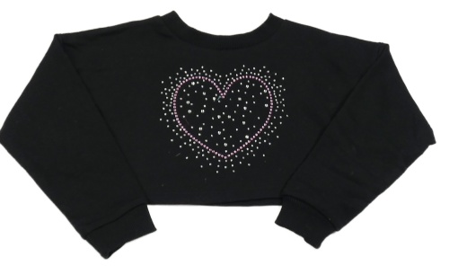 Čierna oversize crop mikina so srdiečkom a kamienkami Peacocks