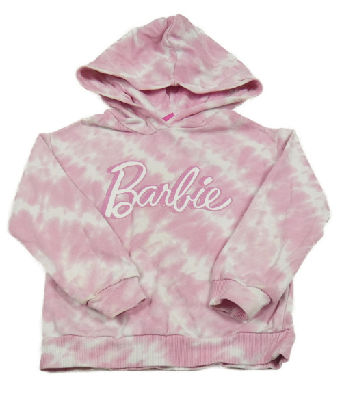 Ružovo-biela batikovaná mikina s Barbie a kapucňou