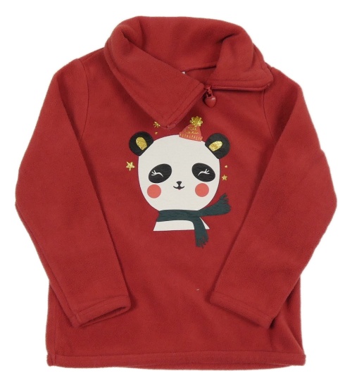 Červená fleecová mikina s pandou a golierom C&A