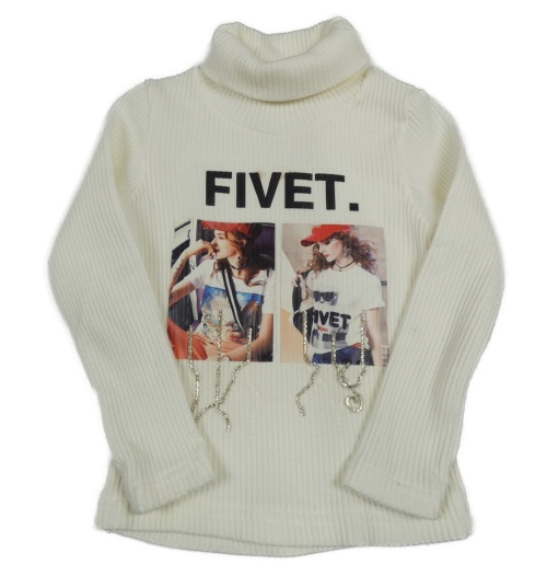 Smotanový rebrovaný svetrový rolák s dievčatkom