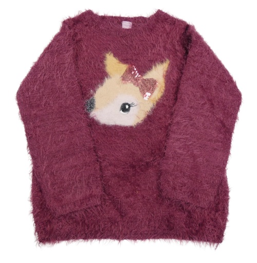Vínový chlpatý sveter s laní Dopodopo