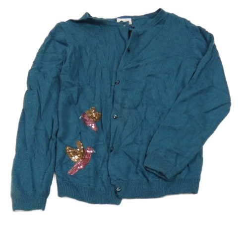 Petrolejvoý prepínaci sveter s kolibříky a flitrami