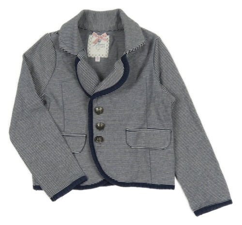 Tmavomodro-bílý pruhovaný teplákový crop kabátek