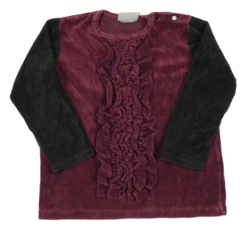 Ružovo-tmavosivá zamatová mikina s volánikmi