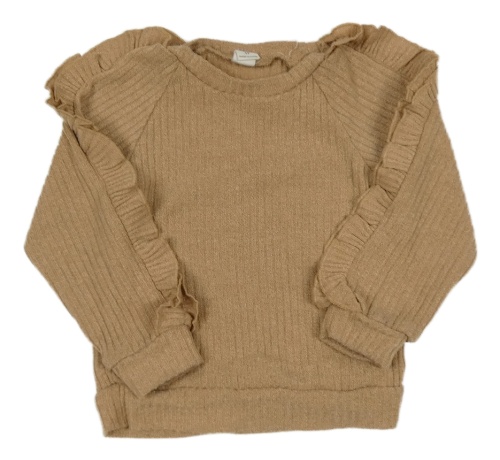 Béžový rebrovaný sveter s volánikmi Shein