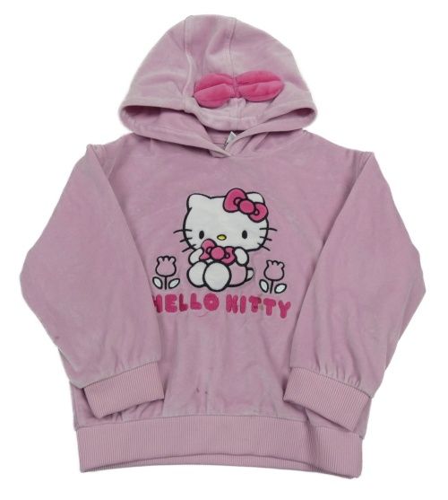 Svetloružová zamatová mikina s Hello Kitty s kapucňou