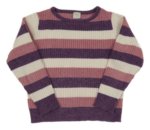 Bielo-ružovo-fialový pruhovaný rebrovaný žinylkový sveter