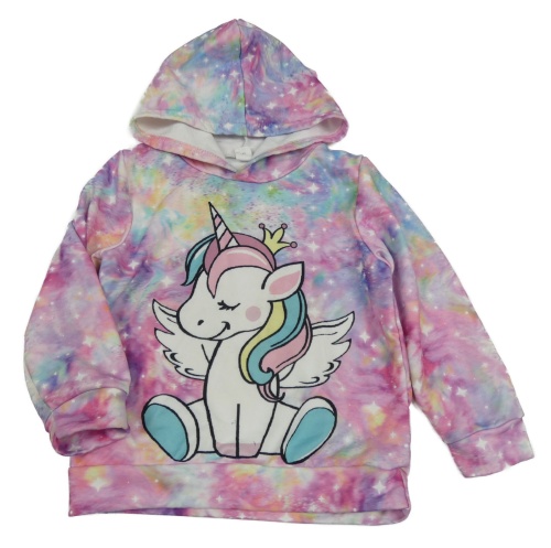 Farebná batikovaná mikina s jednorožcom a kapucňou SHEIN