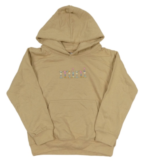 Piesková á mikina s nápisem z květů a kapucňou AWDis
