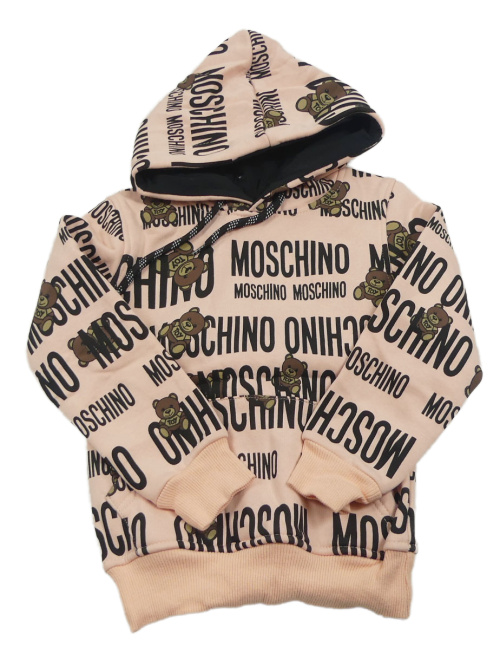 Ružová mikina s medveďmi s nápismi a kapucí Moschino