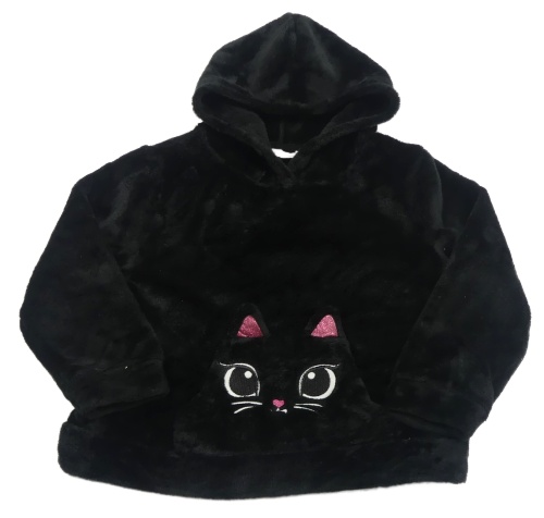 Čierna plyšová mikina s mačkou a kapucňou H&M