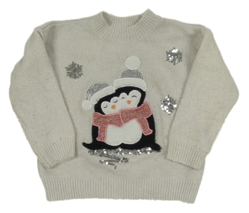 Svetlosivý crop sveter s tučňáčky a vločkami z flitrů F&F