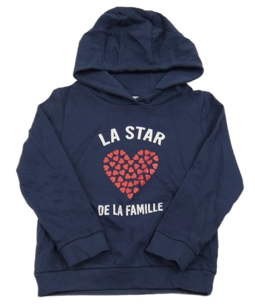 Tmavomodrá mikina s nápisem, srdiečkami a kapucňou