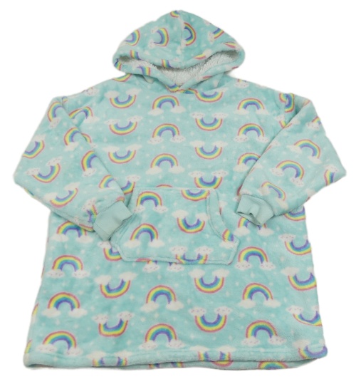 Belasá chlpatá oversize mikina s duhami a kapucňou
