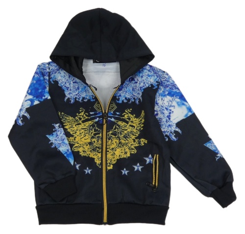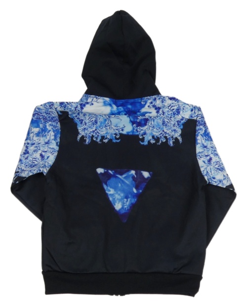 Tmavomodrá prepínaci športová mikina so vzorom a kapucňou