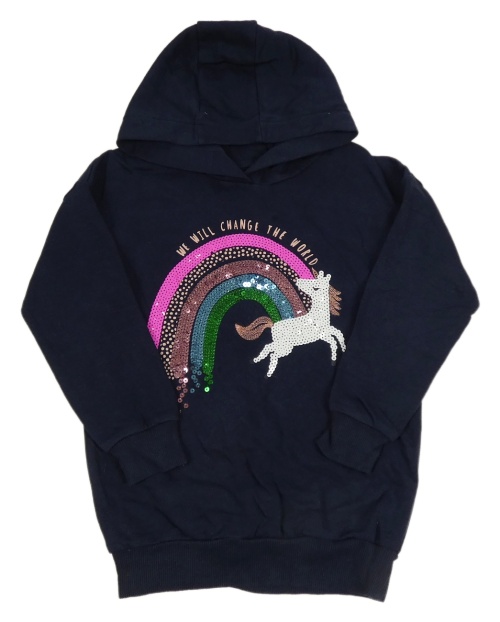 Tmavomodrá dlhá mikina s dúhou s jednorožcem z flitrů a kapucňou F&F