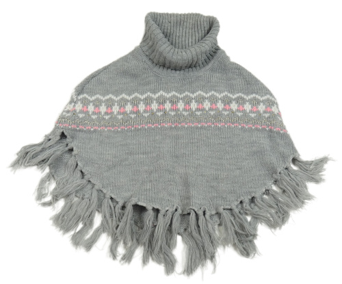 Sivé svetrové pončo so vzorom a strapcemi a rolákom H&M