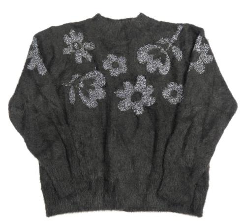 Antracitový chlpatý sveter s trblietavymi kvety Next