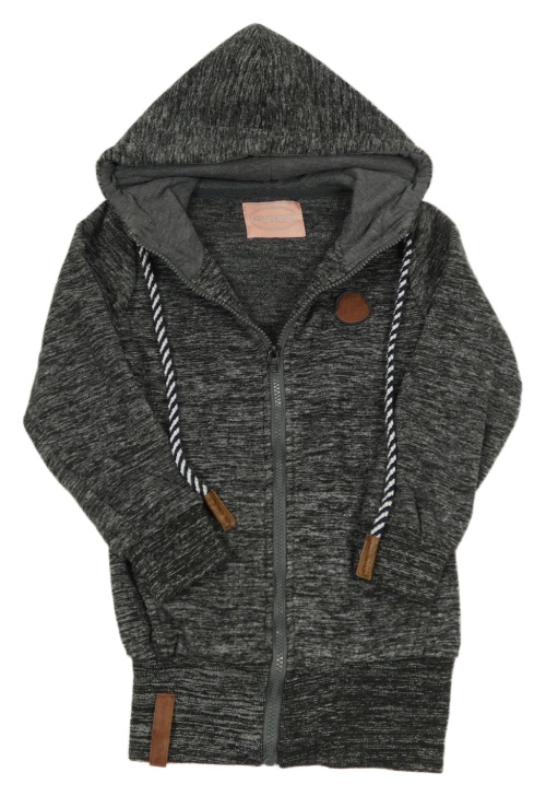 Čierno-sivá melírovaná fleecová prepínaci mikina s nášivkou a kapucňou
