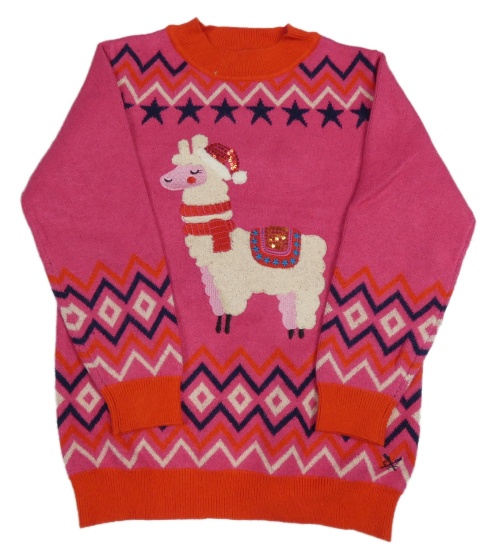 Sivo-červený sveter s lamou a vzorom