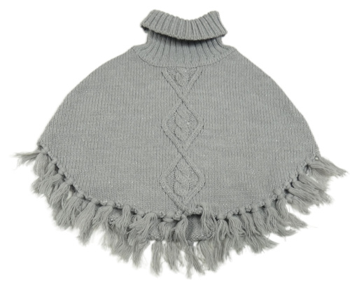 Sivé svetrové melírované pončo s rolákom a strapcemi H&M