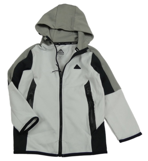 Bielo-sivo-čierna prepínaci mikina s nášivkou a kapucňou