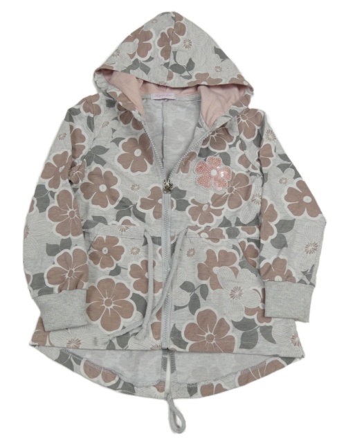 Sivá melírovaná prepínaci mikina s kvetmi a kapucňou Hoper star