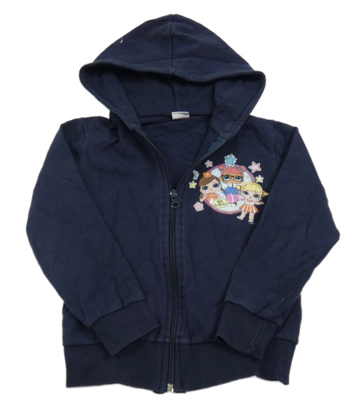 Tmavomodrá prepínaci mikina s L.O.L. a kapucňou