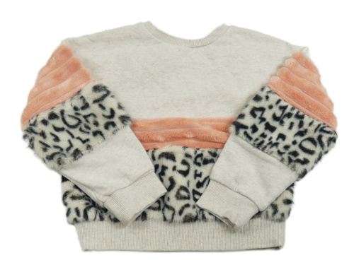 Béžovo-korálovo-kožušinová mikina so vzorom F&F