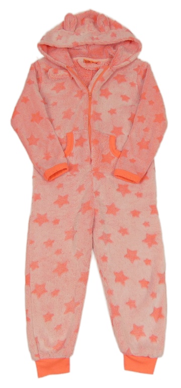Neónově oranžová chlpatá kombinéza s hviezdami a kapucňou Kiki&Koko