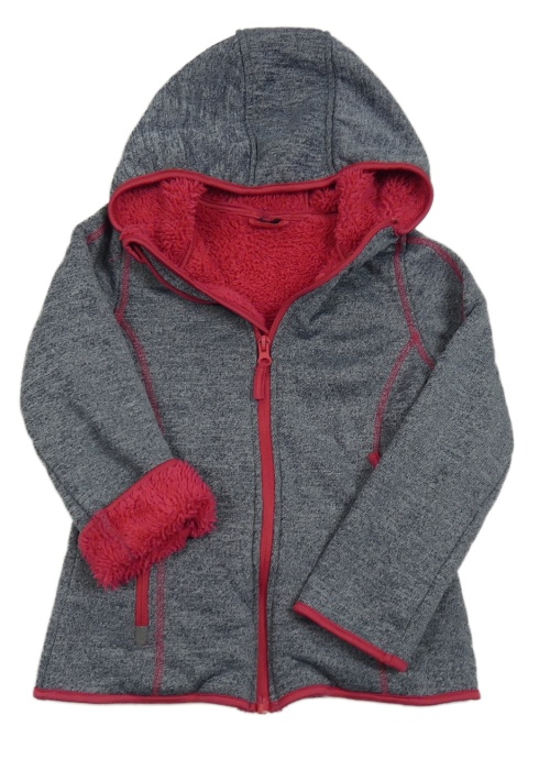 Tmavomodro-ružová melírovaná pletená zateplená prepínaci mikina s kapucňou