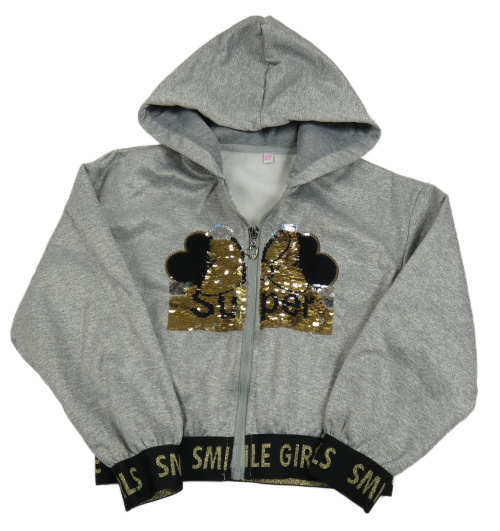 Sivá melírovaná prepínaci mikina s překlápěcími flitre a kapucňou