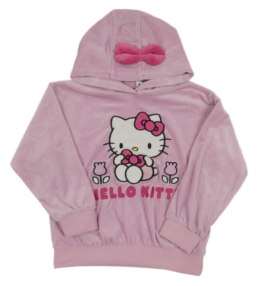 Svetloružová zamatová mikina s Hello Kitty a kapucňou