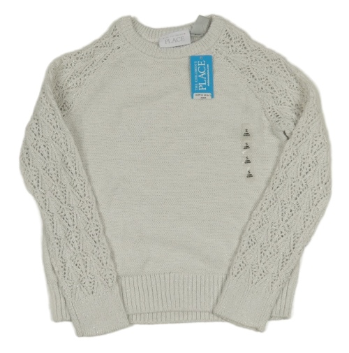 Nové - Biely trblietavý sveter so vzorovanymi rukávy