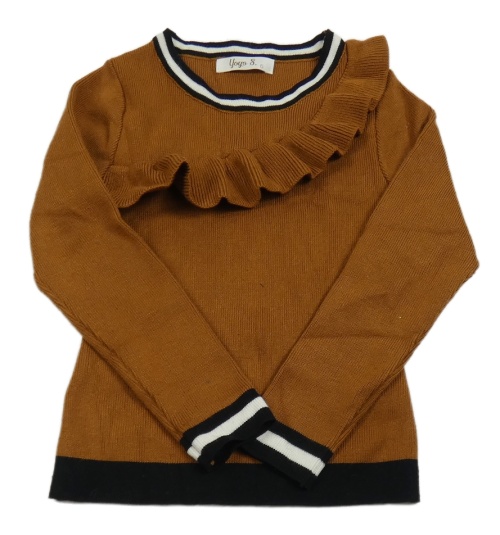 Hnedý ľahký sveter s tmavomodrým lemem a volánikom