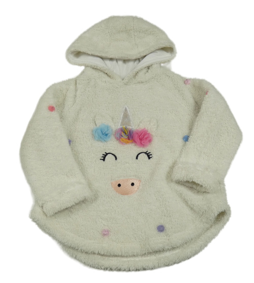 Smotanová chlpatá mikina s jednorožcom a kapucňou Tu