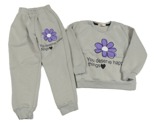 2Set - Svetlosivá tepláková mikina s květem a nápisy + tepláky Cimiks