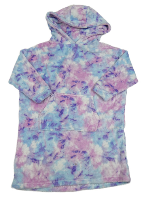 Ružovo-modrá vzorovaná chlpatá oversize domáceá mikina s kapucňou Tu