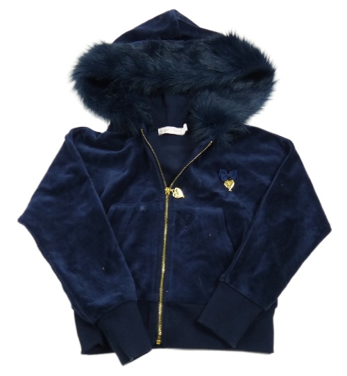 Tmavomodrá zamatová prepínaci mikina s kapucňou s kožešinou