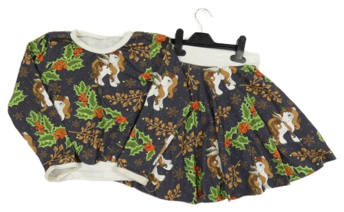 Nové - 2set - Tmavomodrá ľahká mikina s jmelím a jednorožci + sukňa Dunnes Stores