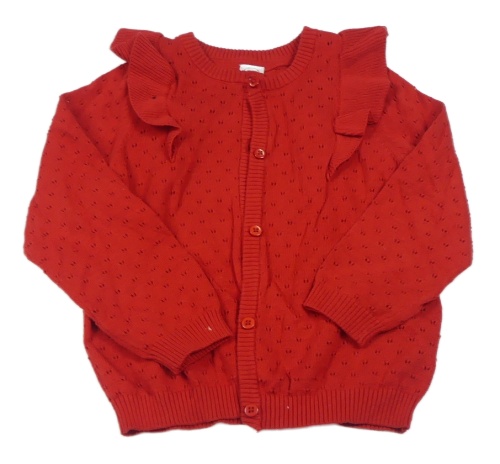 Červený perforovaný prepínaci sveter s volánikmi little kids