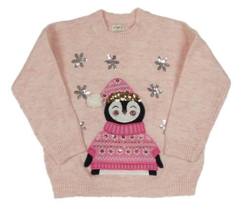 Svetloružový melírovaný sveter s tučňákem a vločkami z flitrů F&F