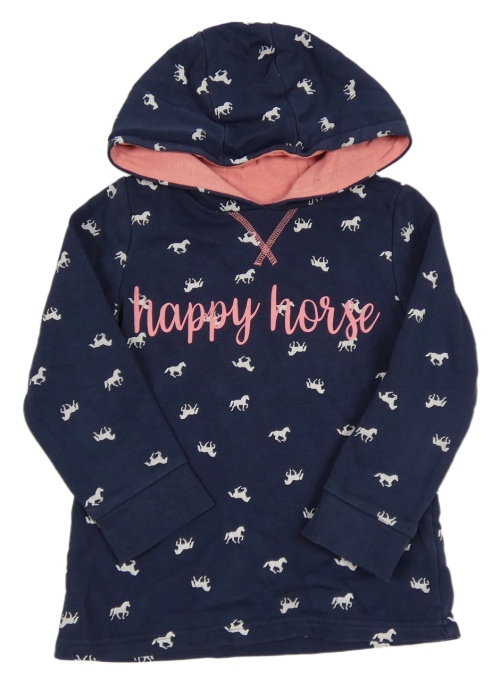 Tmavomodrá melírovaná mikina s koníky a nápisom a kapucňou Topolino